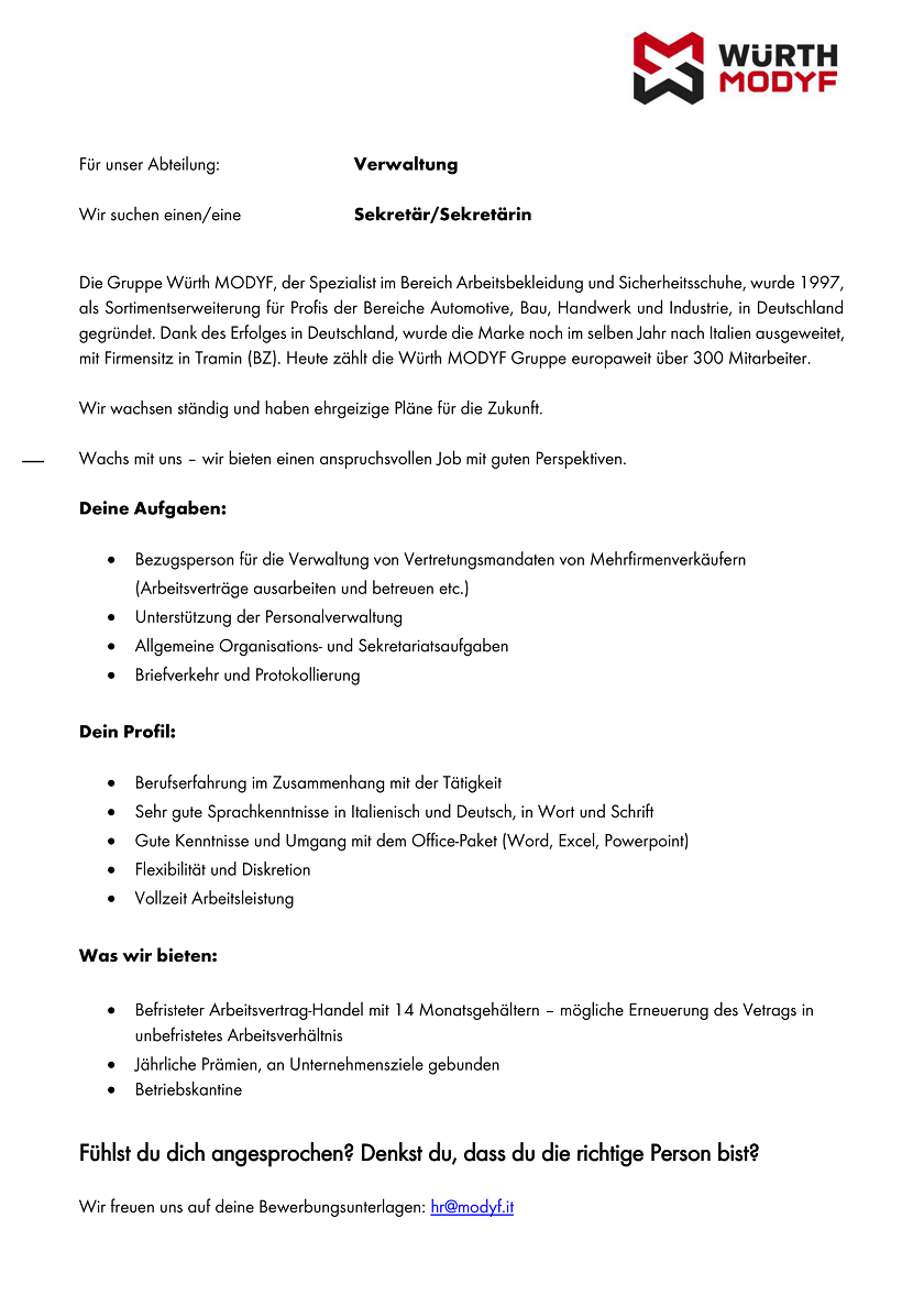 - Sehr gute Italienischkenntnisse in Wort und Schrift