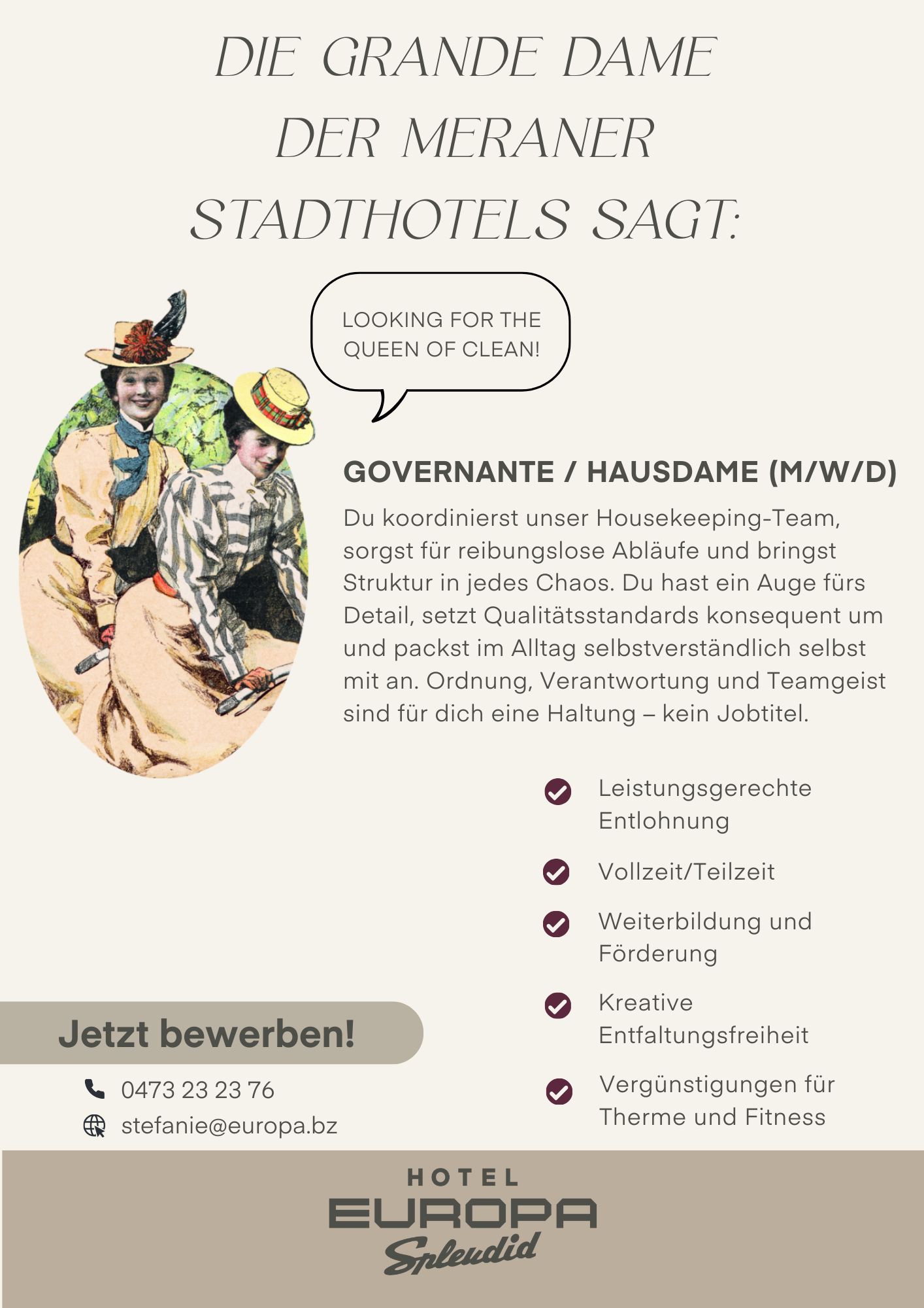 Du koordiniert unser Housekeeping-Team, sorgst für reibungslose Abläufe und bringst Struktur in jedes Chaos. Du hast ein Auge fürs Detail, setzt Qualitätsstandards konsequent um und packst im Alltag selbstverständlich selbst mit an. Ordnung, Verantwortung und Teamgeist sind für dich eine Haltung – kein Jobtitel.