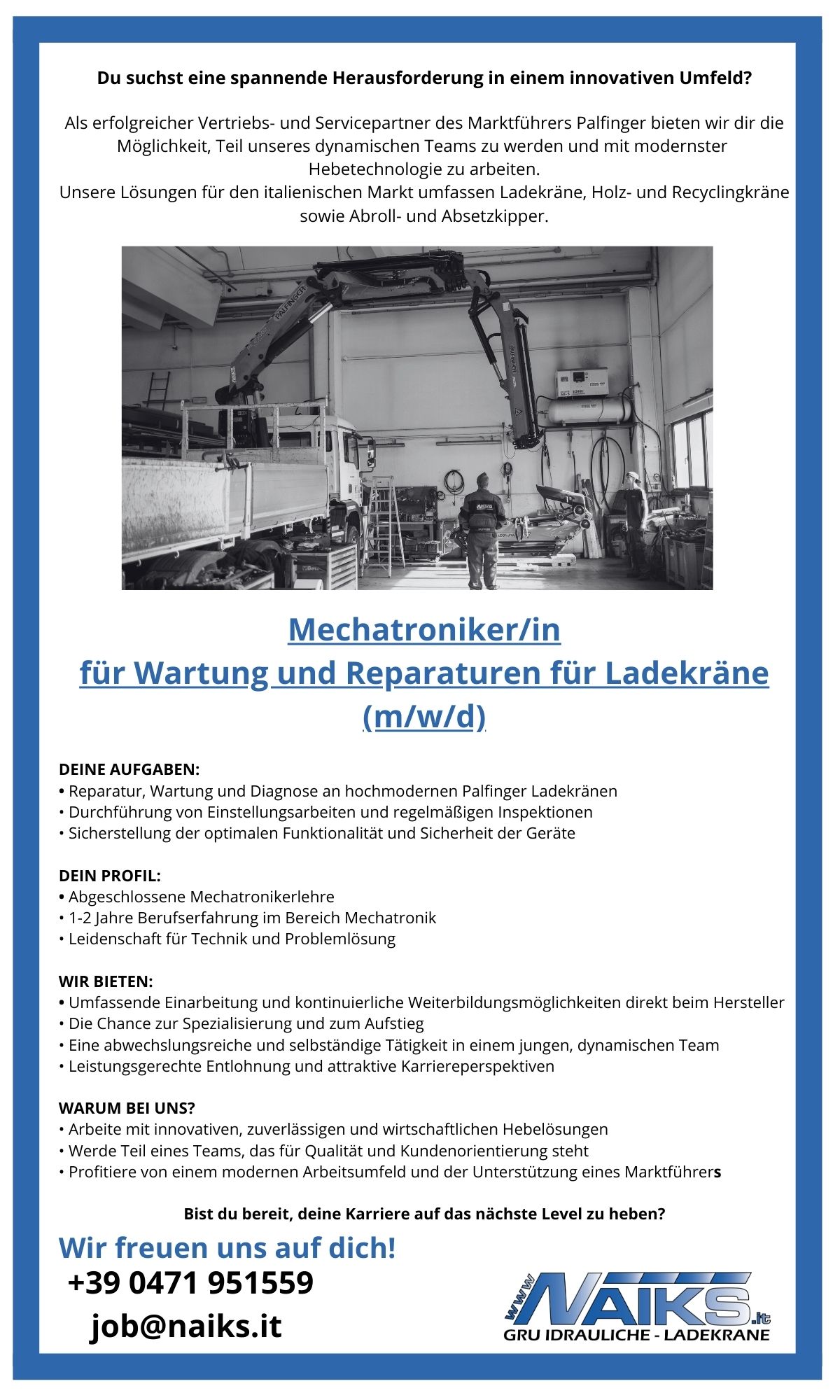 mechaniker für wartung und reparaturen für palfinger ladekräne