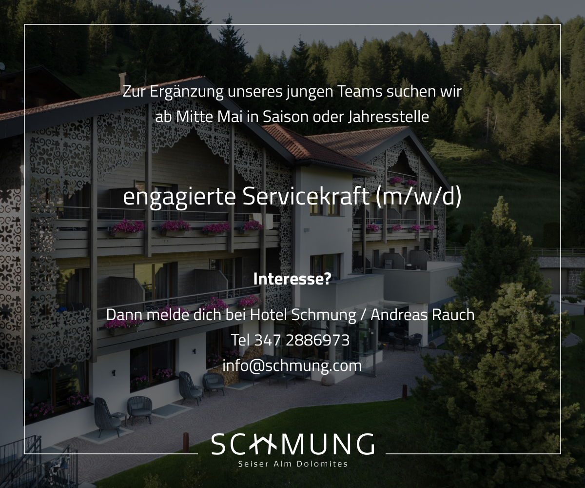 Hotel Schmung auf der Seiser Alm sucht ab Mitte Dezember für die Wintersaison eine